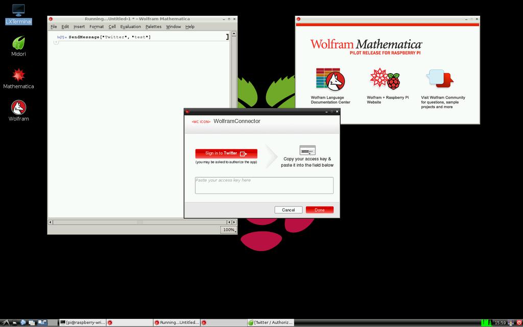 SendMessage[ "Twitter", "A tweet from the Wolfram Language on the Raspberry Pi!"]