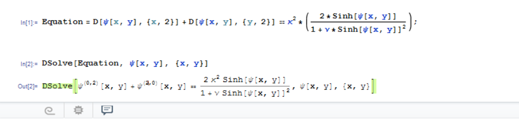 D[\[Psi][x, y], {y, 2}] == \[Kappa]^2*((2*Sinh[\[Psi][x, y]])/(
