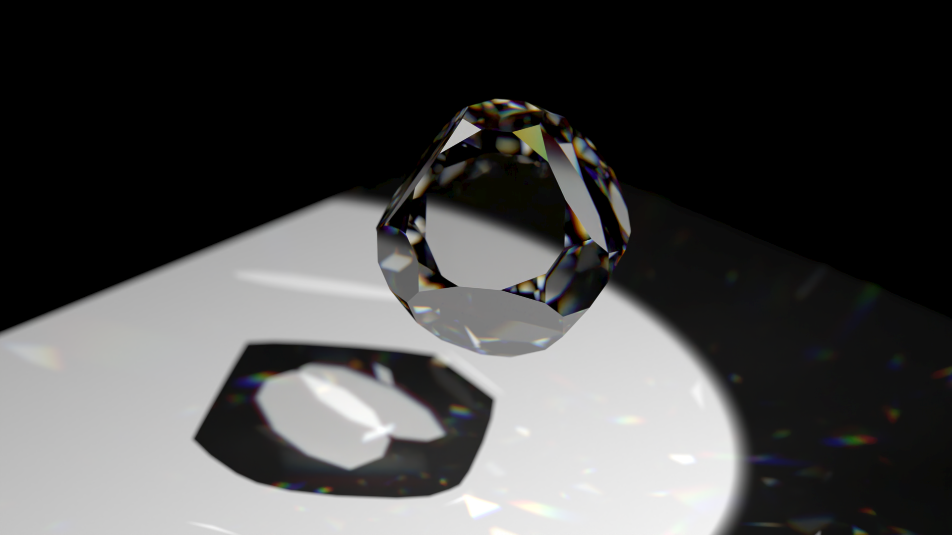 To emulate a real diamond, we need LuxCoreRender's built-in "glass" material with refractive index of diamond.