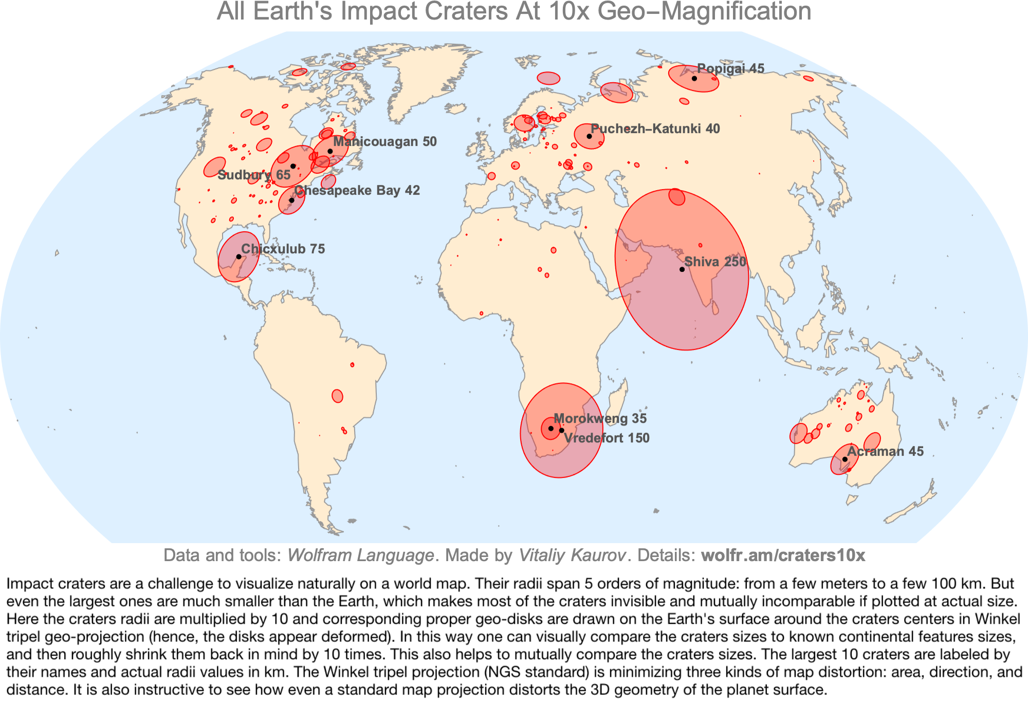 Earth's Impact Craters,10x Geo-Magnification, Largest % in North America