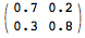 matrix = {{0.7, 0.2}, {0.3, 0.8}}