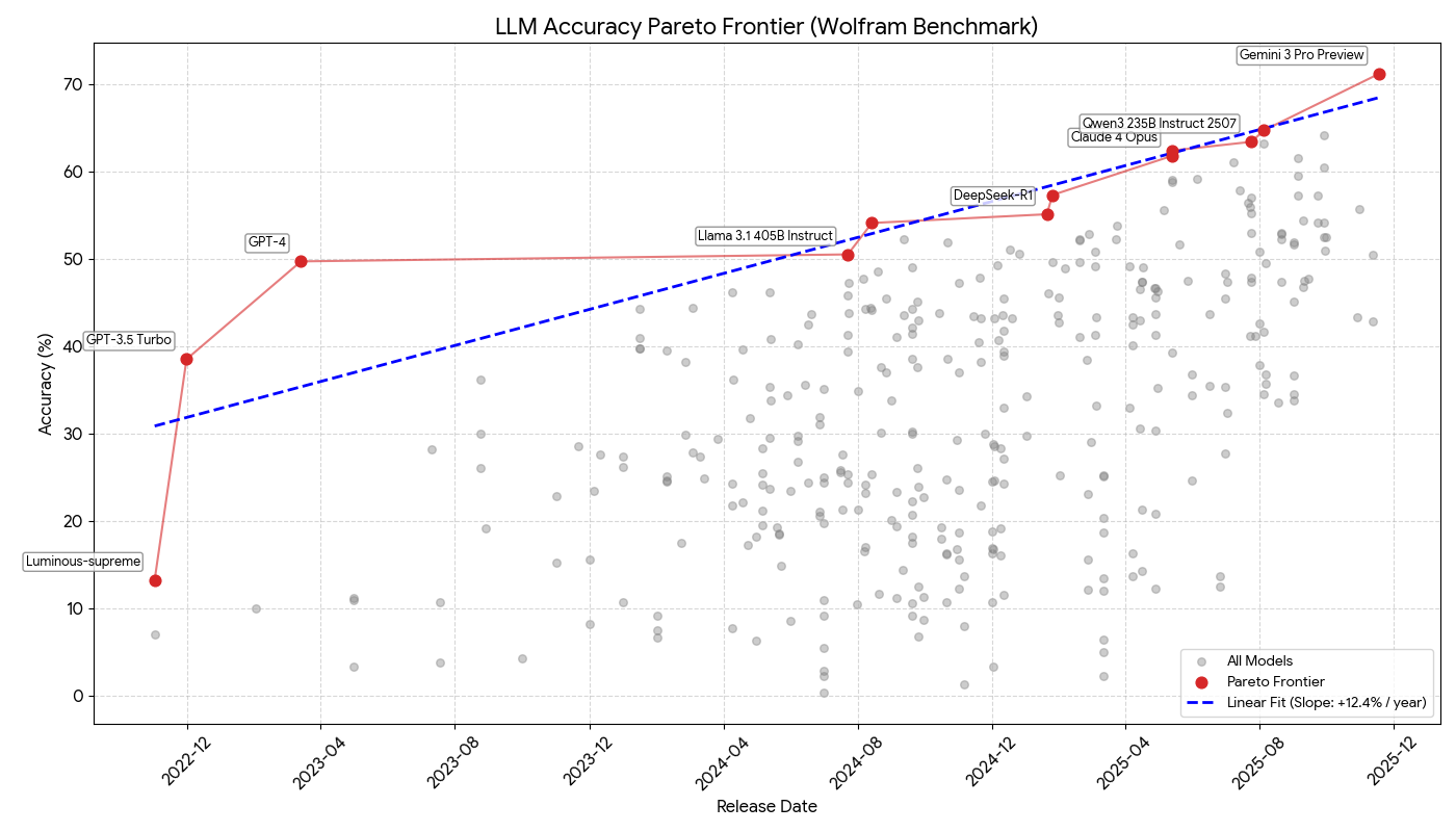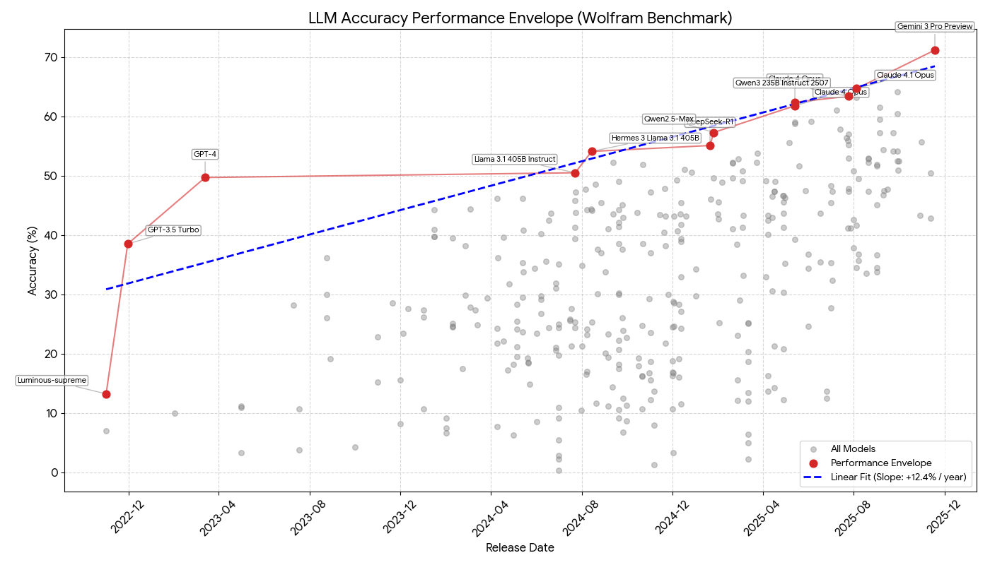 Wolfram LLM benchmark scores over time