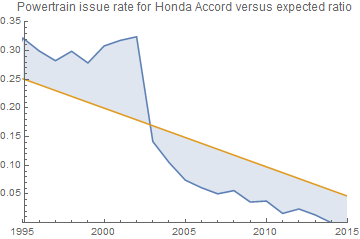 It also lets us look at industry-wide trends, so we can develop a base-line for what the expected rate of defects for an average vehicles(or vehicle of a certain class) should be: